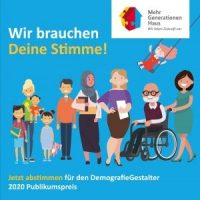 Unter dem Motto „Engagement ermöglichen und stärken“ werden Angebote ausgezeichnet, durch die freiwillig Engagierte auf innovative Weise gewonnen, begleitet und unterstützt werden. Stimmen können online bis zum 31. März 2020 unter folgendem Link abgegeben werden: www.mehrgenerationenhaeuser.de/demografiegestalter2020/abstimmung