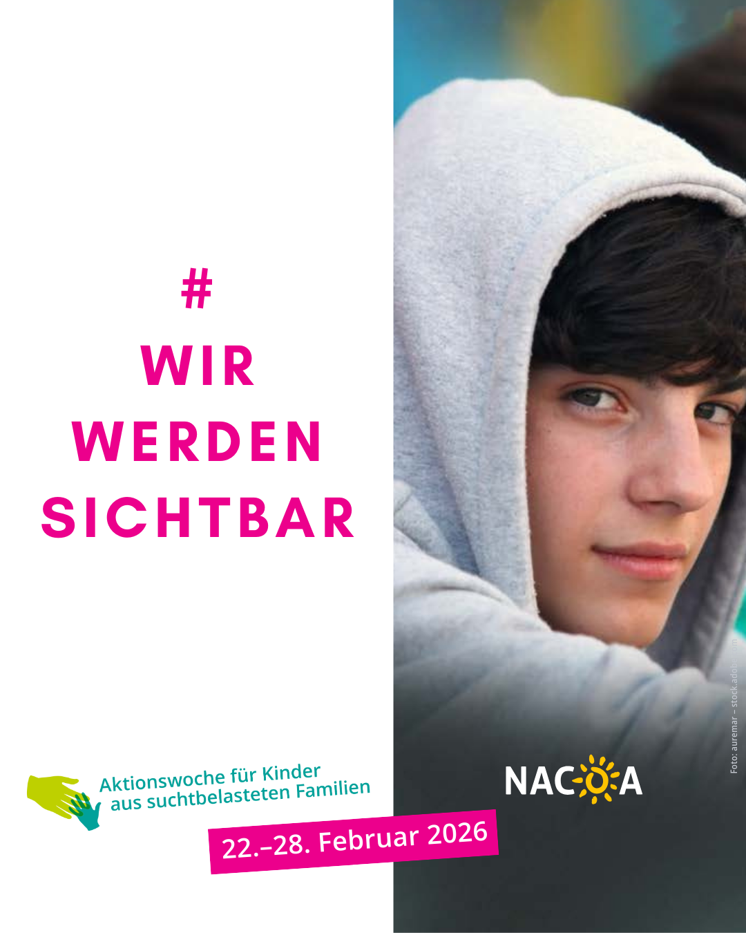 Unter dem Motto „Wir werden sichtbar!“ ruft die bundesweite Interessensvertretung NACOA vom 22.-28. Februar 2026 wieder zu Veranstaltungen im ganzen Land auf, um auf die Lage betroffener Kinder aufmerksam zu machen. Jedes fünfte bis sechste Kind in Deutschland wächst mit einem suchtkranken Elternteil auf. Das sind insgesamt drei Millionen Kinder und Jugendliche. Viele von ihnen erleben Vernachlässigung und Gewalt, leiden oft ein Leben lang unter diesen Erfahrungen. Hinzu kommen geschätzt etwa sechs Millionen Erwachsene, die in suchtbelasteten Familien groß geworden sind. Ihr Risiko, selbst eine Sucht oder andere psychische Krankheit zu entwickeln, ist um ein Vielfaches erhöht. Eine riesige Gruppe, die bis heute zu oft unsichtbar bleibt. Mit der COA-Aktionswoche 2026 wollen wir sie sichtbar machen und zeigen, wie wir ihnen und ihren Familien wirksam helfen können.