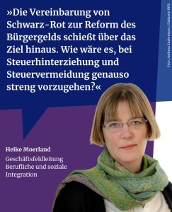 Sie erklärt: „Ja, das Bürgergeld braucht Korrekturen – aber die neuen Pläne bedienen populistische Stimmungen gegen Menschen, die auf Unterstützung angewiesen sind. Pflichtverletzungen haben viele Gründe, etwa Meldeversäumnisse, weil Post nicht ankommt. Nicht alle rechtfertigen Sanktionen. Die Rasenmähermethode ist fehl am Platz. Menschen, die Rechtsansprüche auf Sozialleistungen geltend machen, verdienen einen respektvollen und würdevollen Umgang.“