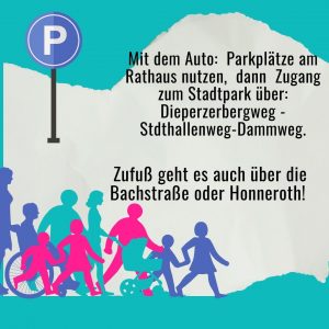 Trotz der aktuellen Bauarbeiten ist der Zugang zum Park über den Dammweg und die Schützenstraße problemlos möglich. Parkmöglichkeiten stehen rund um das Rathaus zur Verfügung. Auch über den Ortsteil Honneroth ist das Fest gut erreichbar.